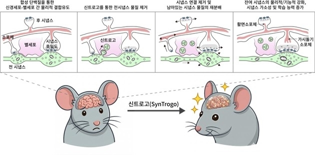 이는 별세포가 신경세포 전체를 손상하지 않고 목표한 시냅스만을 떼어먹어 뇌 회로를 편집하도록 만드는 '신트로고' 기술로, 생쥐의 해마 신경회로에 적용하자 시냅스 밀도가 약 27% 감소했다.